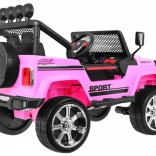 Raptor Drifter 4x4 v ružovej farbe je robustné detské vozidlo inšpirované off‑road štýlom. Štyri motory 45 W zaisťujú dostatok sily, plynulý štart chráni malých vodičov a diaľkový ovládač umožní rodičom prevziať kontrolu jediným tlačidlom STOP. Mäkké EVA kolesá tlmia nerovnosti a zadné tlmiče zvyšujú komfort na nespevnených cestách.