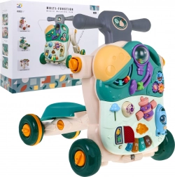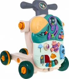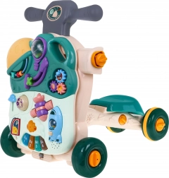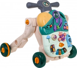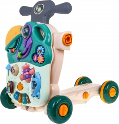 Táto interaktívna hračka 5v1 rastie s vaším dieťaťom a prispôsobí sa jeho potrebám. Ľahko ju premeníte z chodítka na odrážadlo či kolobežku a behom chvíľky tiež na stabilný aktivitný stolík so senzorickým panelom s vesmírnym motívom. Farebné prvky, tlačidlá, prevody a koráliky lákajú k objavovaniu a podporujú jemnú motoriku, logické myslenie aj zmyslové vnímanie.