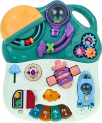 Podsvietené organky, melódie, prevody, posúvače, guličky a odnímateľná raketa udržujú pozornosť a rozvíjajú jemnú motoriku, zrak aj sluch.