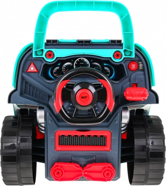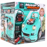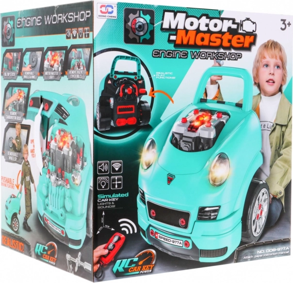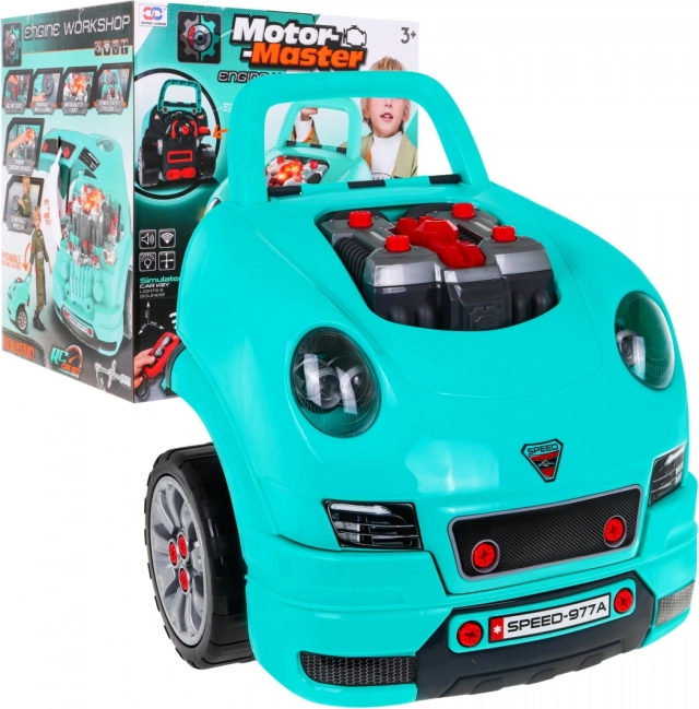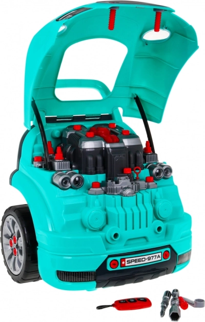 Tento komplexný set „malého mechanika“ prináša prednú časť auta s bohato vybaveným motorom na montáž a demontáž, funkčnú palubnú dosku so štartovacím tlačidlom, volant s klaksónom a výstražným signálom. Deti môžu „servisovať“ sviečky, kolesá aj diely motora, zatiaľ čo svetlá a zvuky ovládajú priloženým ovládačom.