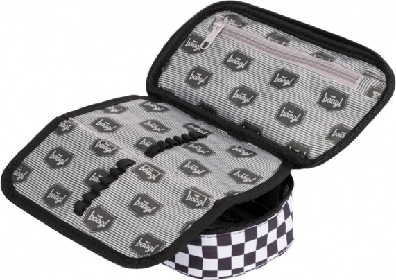 Štýlový školský penál BAAGL v čierno-bielej šachovnici ponúka pevnú konštrukciu, výklopnú prepážku na prehľadné uloženie, vnútorné vrecko na zips a praktický rozvrh hodín. Ideálny pre žiakov, študentov aj do kancelárie. Dodáva sa bez náplne.