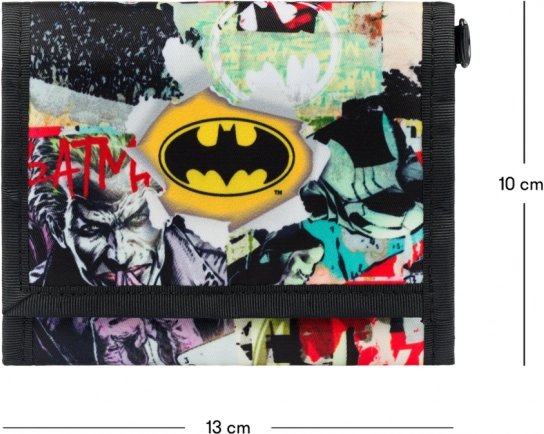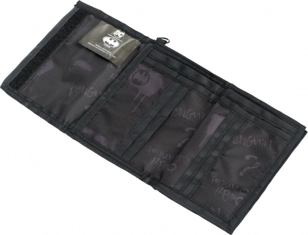 Táto jedinečná peňaženka s oficiálnou licenciou DC Comics sa pýši výrazným dizajnom s motívom Batmana. Je vybavená viacerými priehradkami na karty a hotovosť, čo zaisťuje skvelú organizáciu vašich cenností. Praktické zapínanie na suchý zips a očko na uchytenie ku karabínke prispievajú k jej funkčnosti a bezpečnosti.