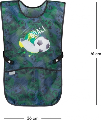 Štýlová detská zásterka s motívom futbalu od značky BAAGL, ideálna pre výtvarné krúžky a iné pracovné aktivity. Praktické vrecká a odolný, umývateľný materiál.