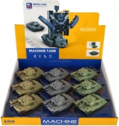 Transformujúci tank/robot prináša hodiny zábavy pre deti, ktoré milujú vojenské hračky a technológie. Táto hračka je na zotrvačník, čo zaisťuje pohyb bez nutnosti batérií.