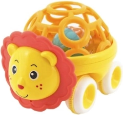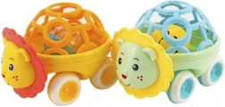 Roztomilé plastové chrastítko v tvare autíčka so zvieratkom je ideálna prvá hračka pre bábätká od 3 mesiacov. Ľahko sa uchopí, je ľahké a vďaka voľnobehu sa jemne kotúľa. Podporuje rozvoj jemnej motoriky, zmyslové vnímanie a prvú koordináciu oko–ruka. Dostupné v dvoch farebných variantoch.