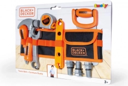 Opasok na náradie s nastaviteľným popruhom v licencii Black & Decker. Súčasťou je 14 ks príslušenstva: píla, skrutkovač, kladivo, kombinovaný kľúč, meter, 3 skrutky, 3 ploché spojky a 3 matice. S odkladacím vreckom. Rozmery: 44 x 10 x 6 cm.