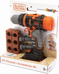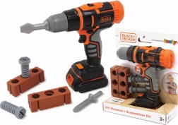 Detská elektronická aku vŕtačka a skrutkovač SMOBY BLACK&DECKER poteší malých kutilov realistickými funkciami. Súčasťou je „tehla“ s otvormi na tréning, 3 vymeniteľné bity, otáčanie vpravo/vľavo, 2 rýchlosti a LED podsvietenie vrtáka.