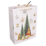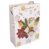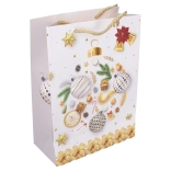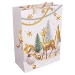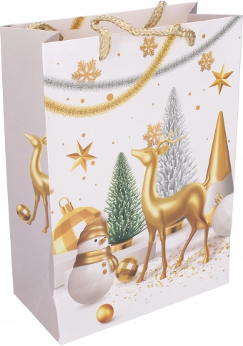 Štýlová darčeková taška vo veľkosti S s rozmermi 18 × 24 × 8,5 cm je ideálna na balenie menších darčekov. Ponúka vianočné motívy, pevné prevedenie a pohodlné prenášanie vďaka praktickým uškám.