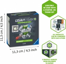 Doplnok kolotoč pridáva do vašich dráh GraviTrax PRO dynamiku a nepredvídateľnosť. Guľôčky môžu na kolotoč vojsť z viacerých smerov, roztočiť sa a pokračovať na ďalšiu úroveň. Skvelo podporuje kreativitu, logické myslenie aj záujem o fyziku a priestorovú geometriu.