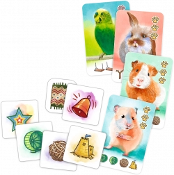 V chytrej a hravej hre Pets & Friends sa pustíte do pátrania po stratených hračkách domácich miláčikov. Za správne nájdené symboly získate karty miláčikov, ktoré vám prinesú body na konci hry a zároveň odomknú užitočné špeciálne schopnosti počas partie. Hra je ideálna pre rodiny s deťmi aj začínajúcich hráčov – naučíte sa ju behom chvíľky a baví od prvej minúty.