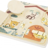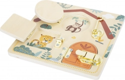 Táto kvalitná drevená motorická doska v tvare domčeka prináša deťom od 3 rokov bezpečnú výzvu: otvoriť, zatvoriť a znovu objavovať. Rôzne typy zámkov, západiek a priezok učia praktickým zručnostiam každodenného života, zatiaľ čo hravý dizajn so zvieratkami zo Safari podporuje zvedavosť a sústredenie.