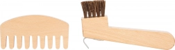 Kefy, hrebeň a škrabka na kopytá z odolného dreva sú navrhnuté pre malé detské ruky a realistickú hru.