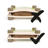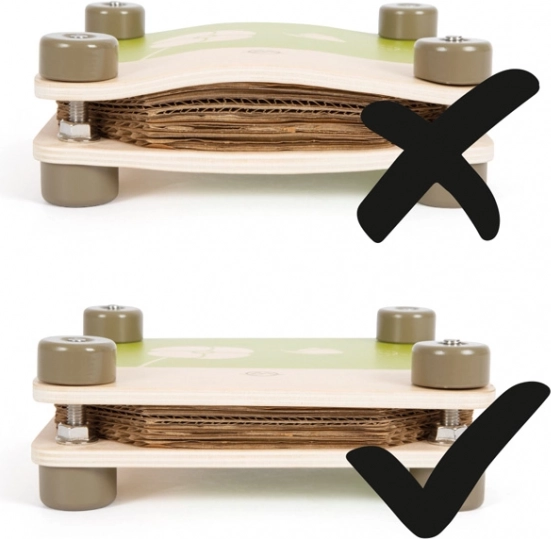 Štyri kovové skrutky s maticami poskytujú silný a rovnomerný tlak, ktorý deti zvládnu dotiahnuť samy.
