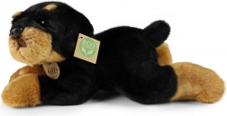 Roztomilý plyšový pes Rottweiler v ležiacej polohe s dĺžkou 30 cm poteší deti aj dospelých. Má realistické spracovanie, vysoko kvalitný mäkký plyš a eco-friendly výplň z recyklovaných PET fliaš, ktorá je bezpečná aj pre najmenších.