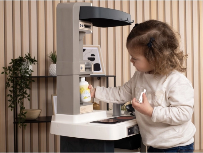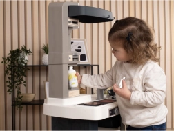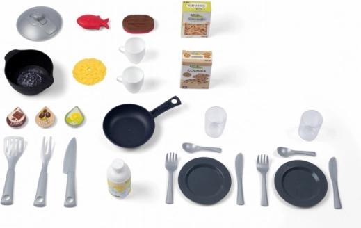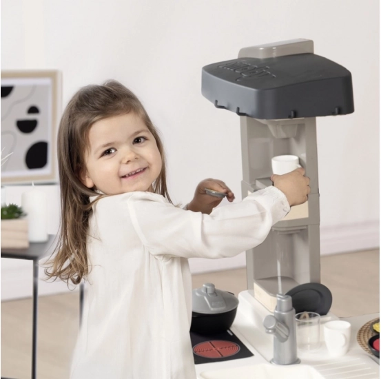 Elektronická kuchynka Smoby mini Tefal Studio je vybavená zvukovými efektmi, ktoré pridávajú na realistickom pocite z hry. Obsahuje sporák s varičom, digestor, rúru, chladničku, kávovar s kapsulami, saturačný prístroj a panvicu.
