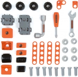 Súčasťou sady sú všetky kľúčové komponenty ako skrutkovač, kľúče, skrutky a ďalšie, podporujúce predstavivosť a jemnú motoriku.