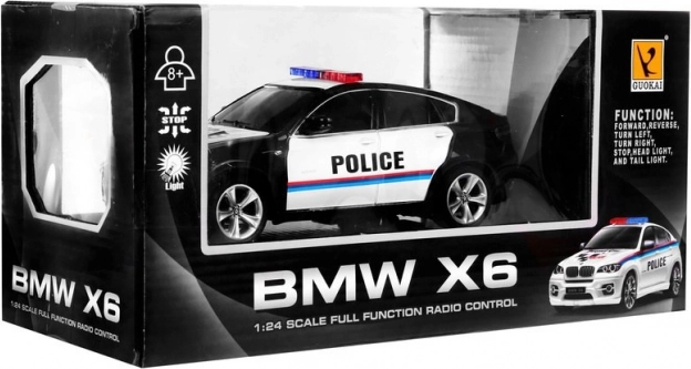 | Popis | BMW X6 na diaľkové ovládanie POLICE v mierke 1:24 27MHz (866-2404P) |