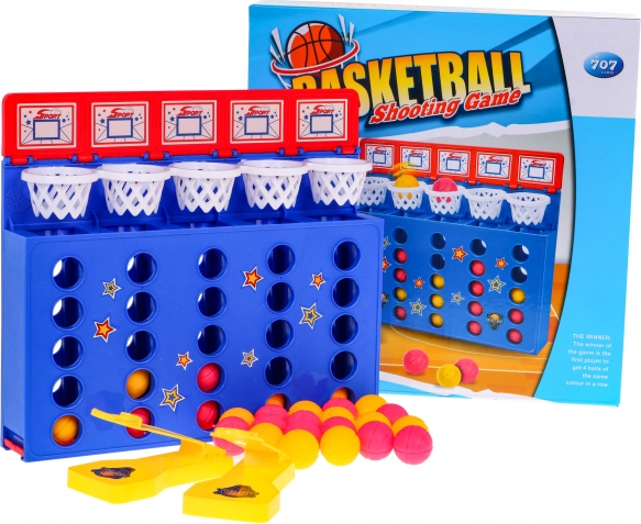 | | Arkádová hra štyri v rade je určená pre deti od 4 rokov. Pravidlá hry sú veľmi jednoduché, musíte trafiť guličkou jeden zo štyroch košov tak, aby sa guličky rovnakej farby zarovnali do radu - vertikálne, horizontálne alebo diagonálne. Kto prvý zoradí do radu 4 loptičky rovnakej farby, vyhráva. Napriek zdaniu to nie je ľahká úloha a o zábavu sa postará množstvo vzrušenia. |