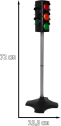 | Vynikajúca vzdelávacia a interaktívna hračka pre najmenších. Navrhnuté pre malých vodičov aj pre ostatných. Hrou sa deti naučia pravidlá cestnej premávky. Hračka má 2 režimy: manuálny a automatický, vytvára svetelné a zvukové efekty. V manuálnom režime sa svetlá menia po stlačení tlačidla umiestneného na semafore. V automatickom režime sa svetlá menia automaticky približne každých 35 sekúnd. Hračka je zabalená v farebnej krabičke, ideálna ako darček. Hračka je určená pre deti od 3 rokov. Hračka má certifikáciu CE. Hračka je napájaná 3 x 1,5 V batériami AAA (nie sú súčasťou balenia) | Hračka je tiež vybavená batériou.