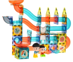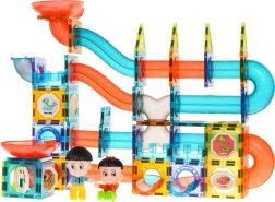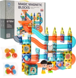 Objavte svet kreativity s touto farebnou sadou obsahujúcou 128 magnetických dielov. Táto stavebnica umožňuje vytvoriť dráhu pre guľôčky v ľubovoľnom usporiadaní. Dieliky sú vyrobené z kvalitného materiálu, sú hladké a precízne spracované. Vďaka zabudovaným magnetom sa ľahko spájajú a zabezpečujú stabilitu konštrukcie. Súčasťou balenia je obrázkový návod na zloženie príkladov dráh.