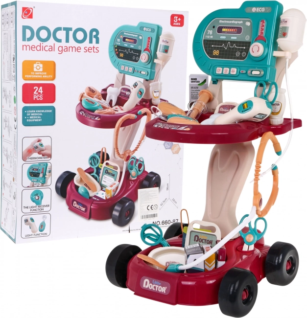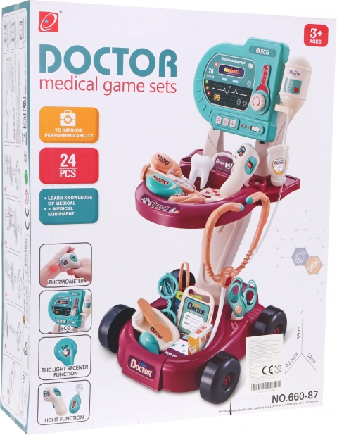 Deti sa môžu hrať s lekárskym vozíkom, ktorý je ľahko prenosný vďaka kolieskam. Táto sada rozvíja imaginatívnu hru a pomáha deťom objavovať svet medicíny.