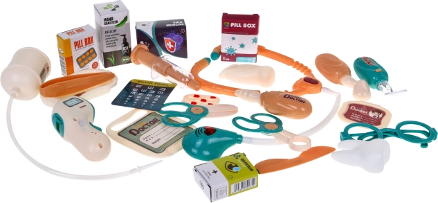 Táto sada obsahuje celý sortiment nástrojov potrebných pre vašich malých doktorov v ich úlohách.
