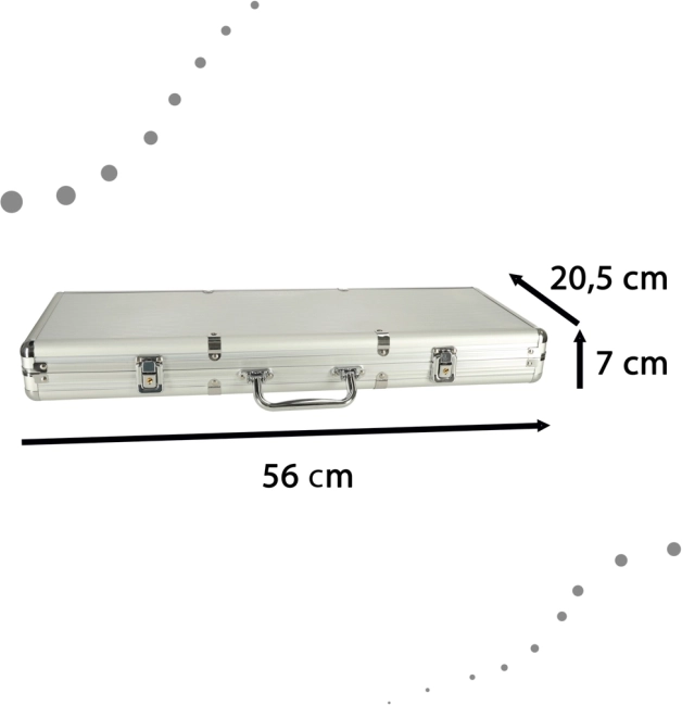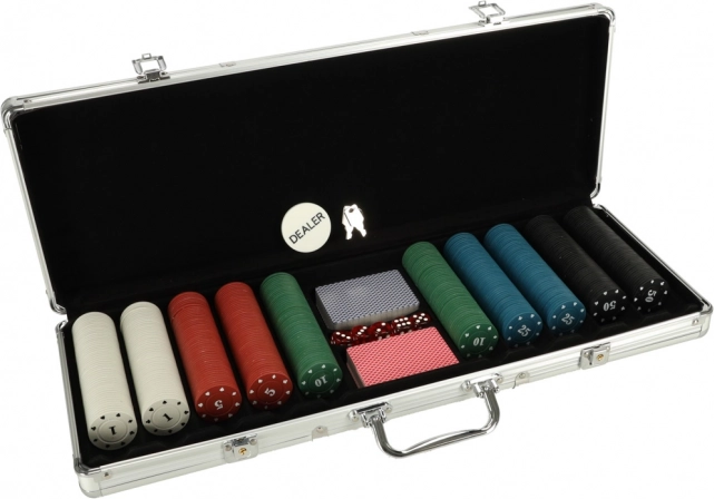 Sada obsahuje žetóny, karty a kocky pre rôzne varianty hier. Strieborný kufrík zaisťuje bezpečné uchovanie komponentov a jednoduchý prenos.