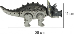 Triceratops sa pri chôdzi pohybuje, hýbe hlavou aj chvostom a sprevádza to rev dinosaura a svetelné efekty. Skvelo sa hodí na samostatnú hru aj spoločnú zábavu. Balené v kartónovej krabici s okienkom – vhodné aj ako darček.