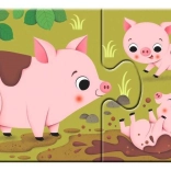 Objavte radosť zo skladania s RAVENSBURGER Moje prvé puzzle – zvieratká a mláďatká. Deväť jednoduchých dvojíc s roztomilými ilustráciami je ideálnym začiatkom pre malé deti, ktoré sa učia spájať súvisiace obrázky a spoznávať svet zvierat.