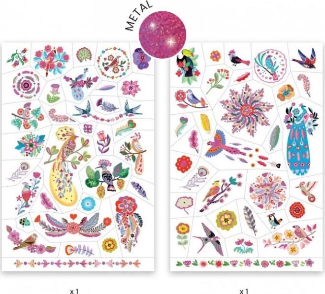 Objavte čaro farebných dočasných tetovaní s motívmi trblietavých vtáčikov od DJECO. Deti si zamilujú hravé ilustrácie a jemný trbliet, ktorý vynikne na pokožke. Tetovania sa jednoducho aplikujú vodou, rýchlo schnú a dlho držia.