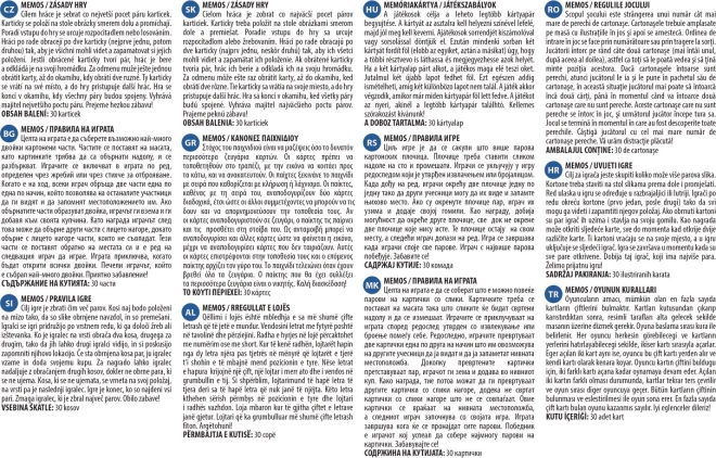 Hra je určená pre deti, ale zabavia sa pri nej aj dospelí. Obsahuje 30 kartičiek, čo tvorí 15 párov obrázkov s vysokou kvalitou tlače. Ideálna pre celú rodinu a na rôzne príležitosti, keď chcete tráviť čas spoločne a precvičiť si mozog.