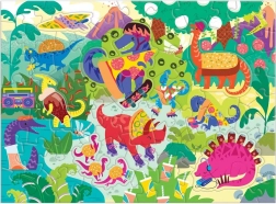 Farebný motív ponúka množstvo detailov a tvarované dieliky v tvare dinosaurov pridávajú na hravosti. Ideálna veľkosť pre deti od 4 rokov, rozmer zloženého puzzle je 38 × 28 cm.