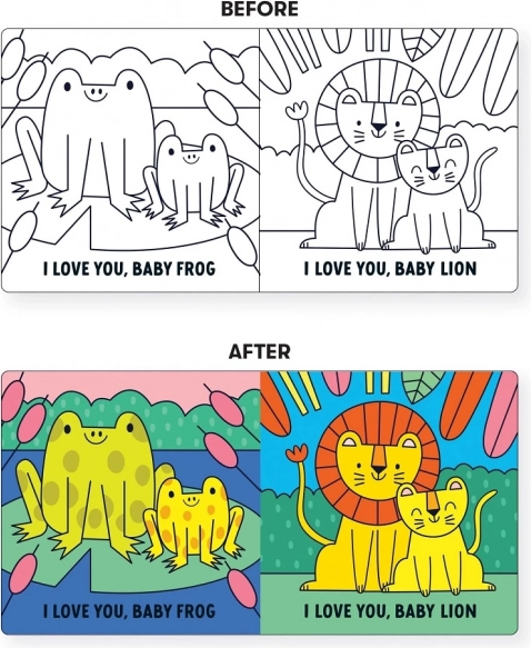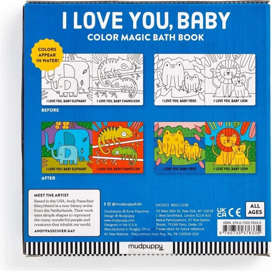 Táto originálna kúpeľová knižka s motívmi roztomilých zvieratiek je navrhnutá pre najmenších. Na suchu je čiernobiela, no po ponorení do vody odhalí žiarivé farby, ktoré deti očaria a podporia ich zvedavosť. Vďaka kompaktným rozmerom a mäkkému spracovaniu je ideálna do detských rúčok a úplne bezpečná na vodné hry.