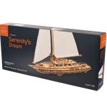 Serenity's Dream je pôsobivý model jachty v duchu klasickej plachetnice, ktorý vyniká kombináciou prírodného dreva a bielych plachiet. Pri stavbe si osvojíte princípy inžinierstva a konštrukcie, zatiaľ čo si užijete relaxačný DIY zážitok. Hotový model sa stane štýlovou dekoráciou pracovne, obývacej izby alebo dizajnovým darčekom pre milovníkov lodí a modelárstva.