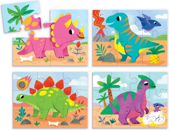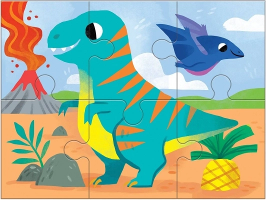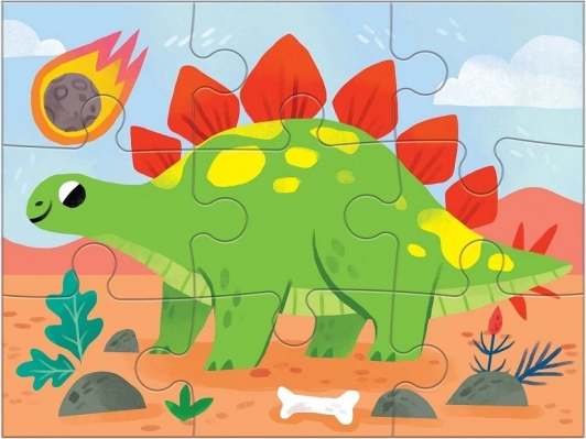 Sada Mudpuppy Dinosaury 4 v 1 prináša štyri rôzne skladačky s veselými ilustráciami dinosaurov od Kathryn Selbert. Každé puzzle má inú úroveň náročnosti (4, 6, 9 a 12 dielikov), takže je ideálne na postupný rozvoj jemnej motoriky, trpezlivosti a logického myslenia detí od 2 rokov.