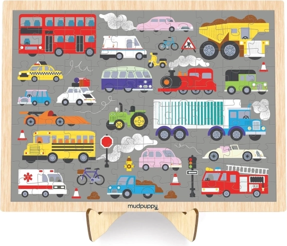Objavte zábavu a učenie s dreveným puzzle MUDPUPPY na tému dopravných prostriedkov. Sada obsahuje 100 pevných drevených dielikov s krásnymi ilustráciami áut, nákladných vozidiel, autobusov a ďalších, a navyše praktický drevený stojan na vystavenie hotového obrázka ako dekorácie.