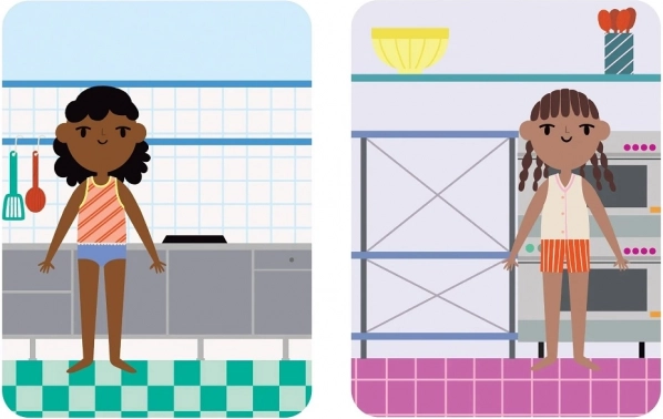 Dve farebné kuchynské scény inšpirované skutočnou kuchyňou podnecujú predstavivosť a rolovú hru.