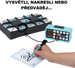 - Elektronické hodiny, 120 obojstranných kartičiek, zásobník na kartičky, stieracia tabuľka, zmývateľný fix