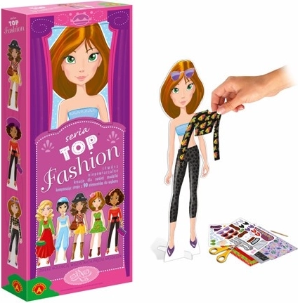 Objavte kreatívny svet módy so sériou Top Fashion – zberateľskými modelkami, vďaka ktorým vytvoríte nespočet originálnych kreácií. Vystrihujte, kombinujte a pomocou obojstrannej pásky jednoducho pripevňujte oblečky na modelku. Kolekcia obsahuje 5 rôznych modeliek; čím viac ich máte, tým viac kombinácií outfitov zvládnete. Samolepiace prvky dodajú stylingu štýlové detaily a po postavení modelky do zvislej polohy môžete výsledný outfit efektne vystaviť.