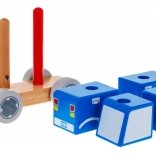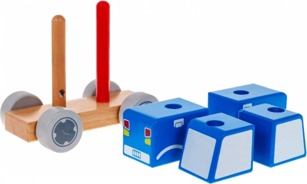 Štyri drevené kocky sa nasadzujú na dva kolíky a spoločne tvoria realistické policajné autíčko. Ideálne na prvé logické úlohy.
