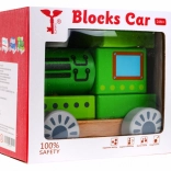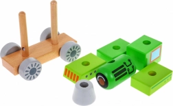 Deti navliekajú farebné kocky na kolíky a stavajú vlastnú mašinku. Učia sa triediť tvary, farby a zlepšujú jemnú motoriku.