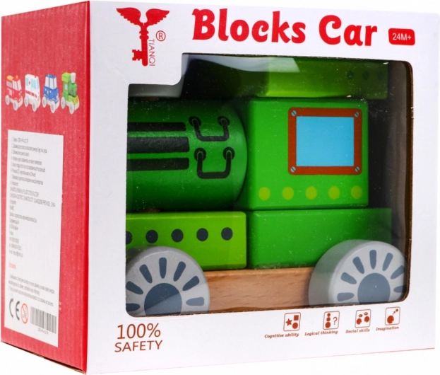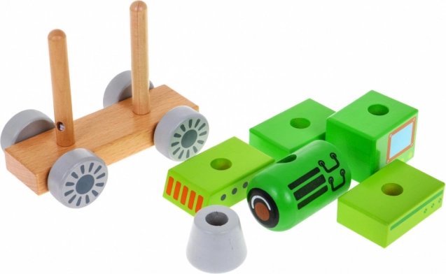 Tento drevený vláčik je ideálna prvá stavebnica pre zvedavé deti od 24 mesiacov. Vďaka dvom kolíkom na platforme môžu deti skladať a kombinovať 6 drevených kociek do tvaru mašinky, trénovať jemnú motoriku a učiť sa rozpoznávať tvary a farby. Robustná drevená konštrukcia a bezpečné, netoxické farby zaručujú dlhú životnosť a bezstarostné hranie.