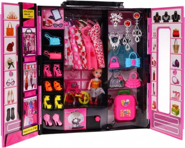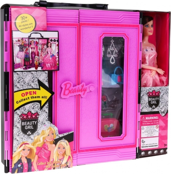 Šatní skriňa s bábikou je úžasný, veľký a farebný set, ktorý je snom každej malej slečny. Tento set obsahuje 30 prvkov a disponuje rukoväťou na jednoduché prenášanie, aby si ho vaše dieťa mohlo vziať kamkoľvek.
