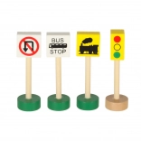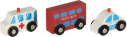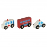 Táto drevená súprava umožňuje deťom tvoriť vlastné mesto s rôznymi vozidlami a budovami.