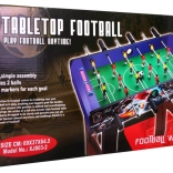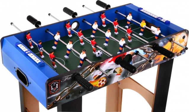 Stolný futbal je vyrobený z MDF materiálu pokrytého odolným laminátom, ktorý zaisťuje pevnosť a odolnosť celej konštrukcie.