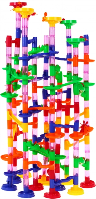 Guličková závodná dráha 219 prvkov je skvelá hra pre malých aj veľkých. Sledovanie, ako guľôčka prekonáva zložité tunely a klesá, upokojuje, utišuje a prináša veľa radosti. Detská fantázia môže vytvárať úžasné konštrukcie podľa návodu alebo vlastných nápadov. Zábavka pozitívne vplýva na rozvoj kreativity, predstavivosti, manuálnych a konštrukčných schopností. Zásady hry: - Postavte vežu z konštrukčných prvkov (4 varianty na výber) podľa návodu, - Spustite guľôčku do pohybu, - Víťazí ten, ktorého guľôčka prvá dorazí do cieľa. Hra je určená pre deti od 3 rokov. Počet hráčov: 2-4. Výborné spracovanie, bohatá farebnosť a rôznorodosť tvarov. Celá hra je zabalená v farebnom balení, čo ju robí ideálnou ako darček.