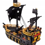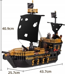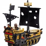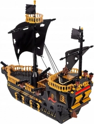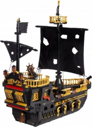 Loď je vyrobená s detailnými prvkami, ktoré pripomínajú skutočnú pirátsku loď, vrátane čiernych plachiet a zlatých ozdôb.