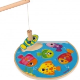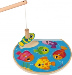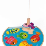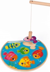 Zábavná drevená magnetická vkladačka pre malých rybárov. Pomocou magnetickej udice deti lovia a vracajú dieliky na správne miesta. Obsahuje 6 farebných rybičiek a 1 udicu, rozvíja jemnú motoriku, koordináciu oko–ruka aj poznávanie farieb a tvarov. Vhodné od 12 mesiacov.