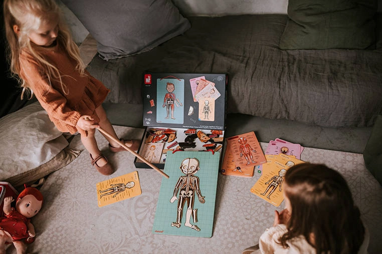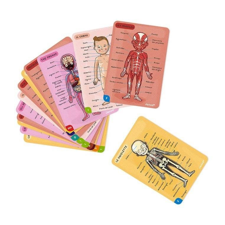 Magnetická skladačka ľudského tela od značky JANOD je múdra vzdelávacia hračka, ktorá deťom názorne ukáže jednotlivé vrstvy tela – od kostry cez svaly až po orgány a vonkajší vzhľad. Vďaka prehľadným kartám v 11 jazykoch si deti rozšíria slovnú zásobu a ľahko pochopia, ako ľudské telo funguje. Učenie je intuitívne, zábavné a podporuje logické myslenie.