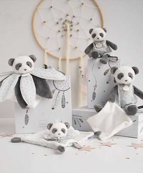 Vysoko kvalitný plyšový maznáčik panda je navrhnutý tak, aby rozvíjal zmysly a zvedavosť vášho malého pokladu. Vďaka jemnej harmónii moderných farieb a prvotriednych materiálov sa stane obľúbeným kamarátom nielen pre tých najmenších, ale aj staršie deti.